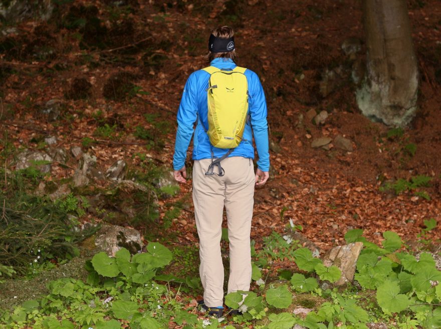 Batoh SALEWA Apex na zádech.