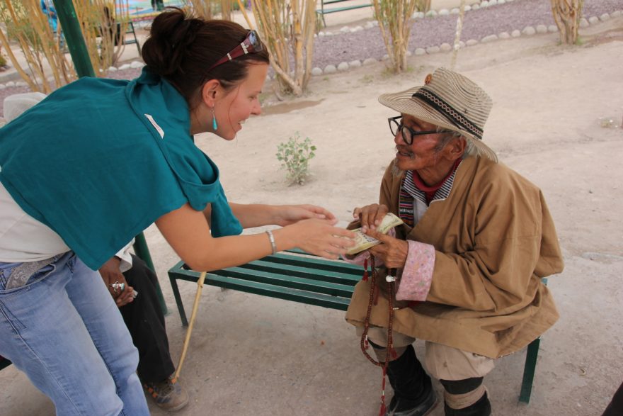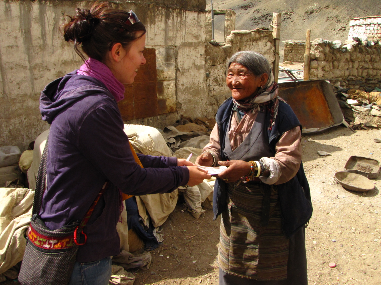 Předávání peněz seniorům – pomoc od Most pro Tibet.