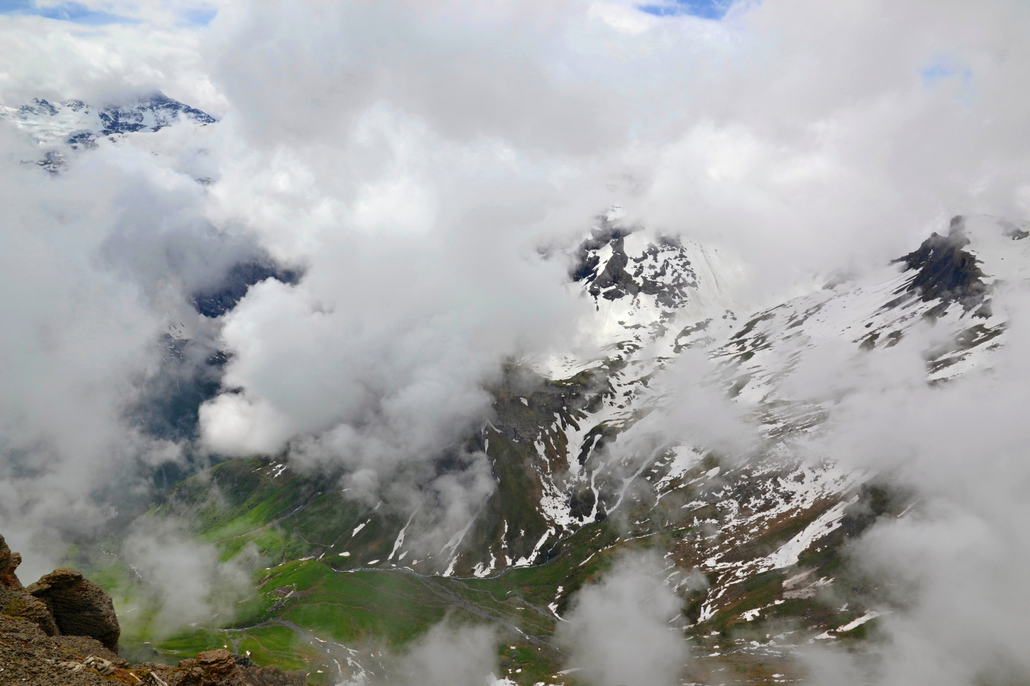 Mračna halí až třítisícové vrcholky a vytváří až surrealistickou podívanou. Schlithorn, Švýcarsko.