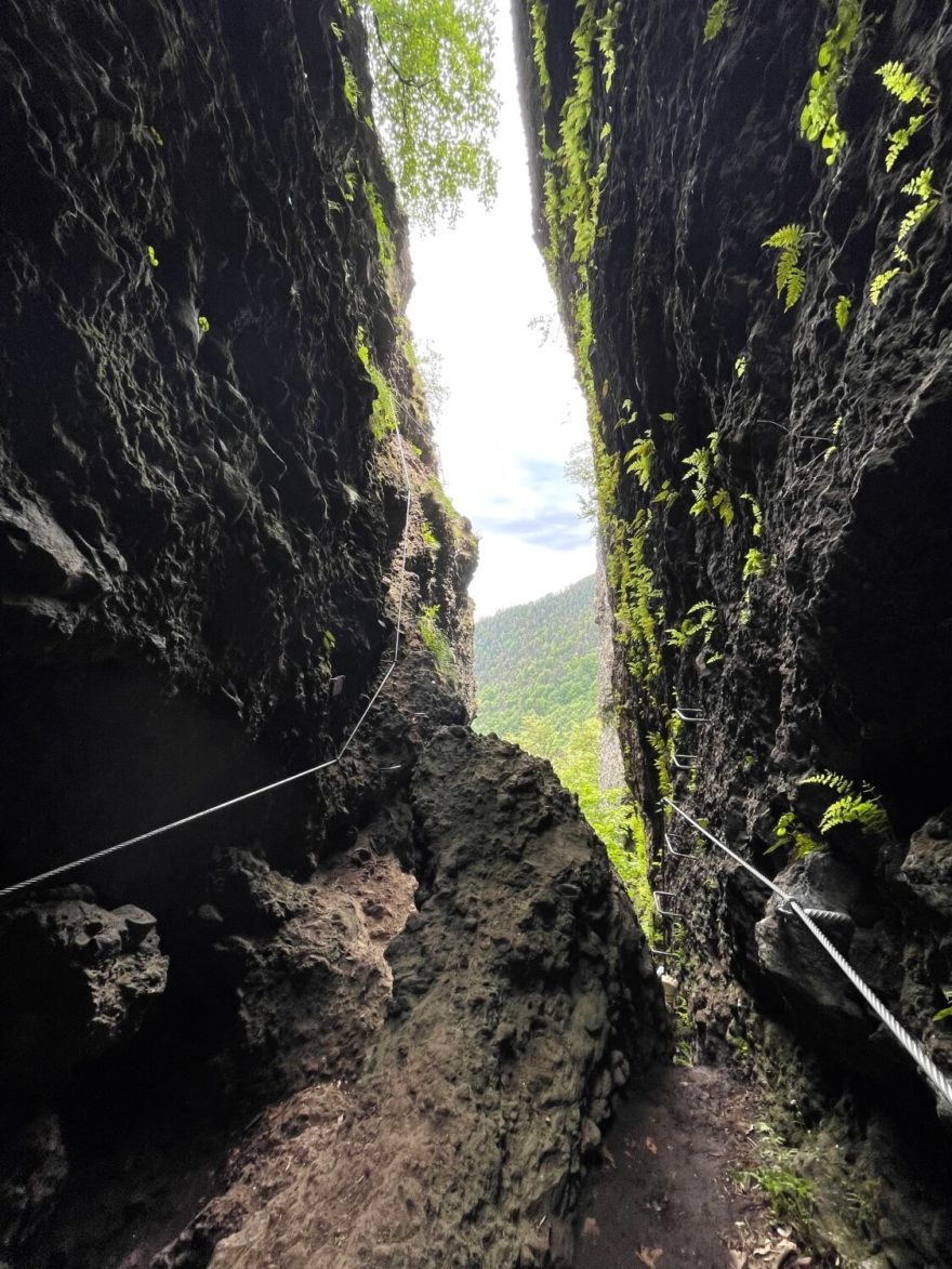 Přístup k ferratám na Sklace vede po ferratě Zostupovka, na níž se překonává také krátky Tibetský most.