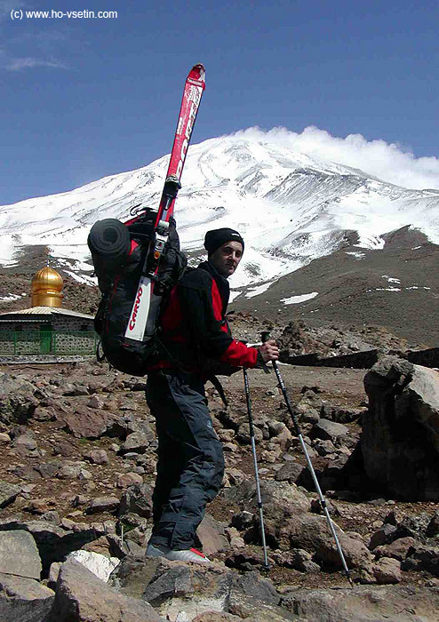 Výhled na Damavánd ze sousedního údolí koncem dubna.