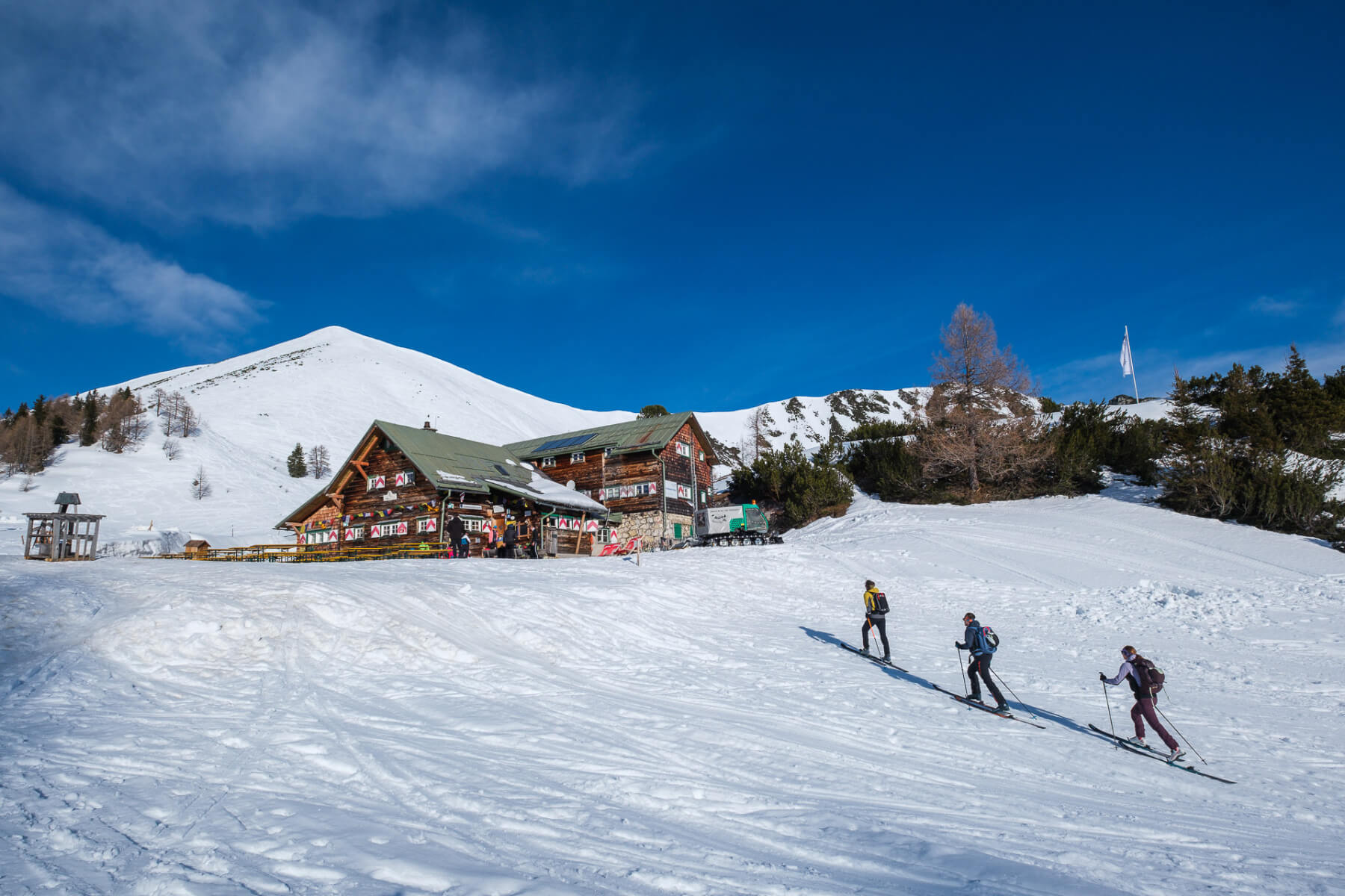 Pohostinná horská chata Südwienerhütte, Radstadtské Taury, Rakousko.