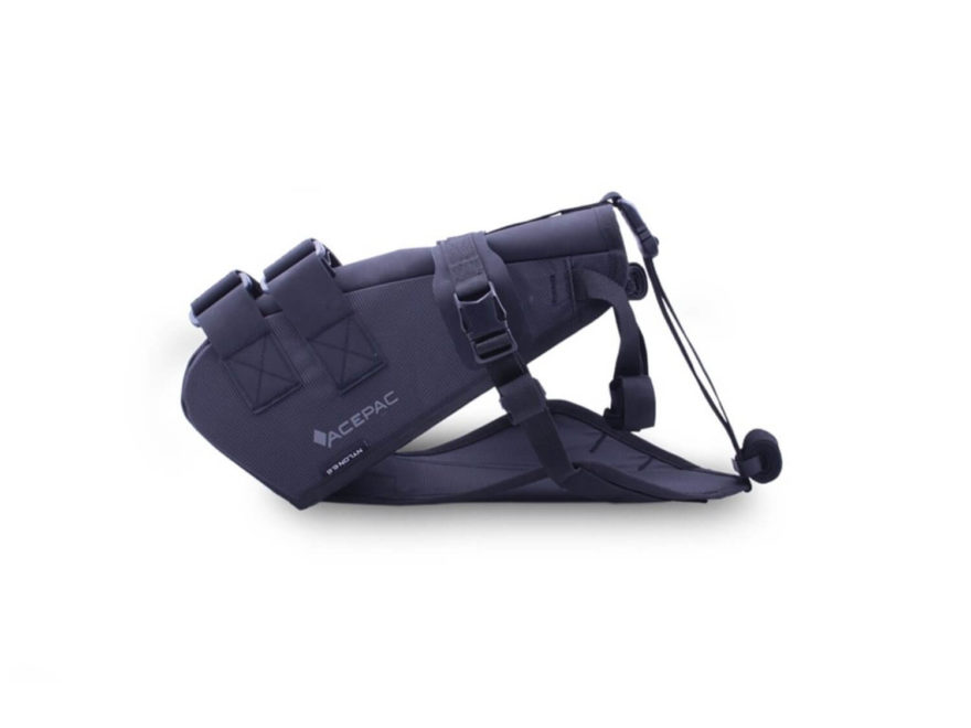 Saddle Harness, hlavním materiálem je Nylon 6.6, doplněný o HDPE desku a duralovou výztuhu pro zajištění pevnosti.
