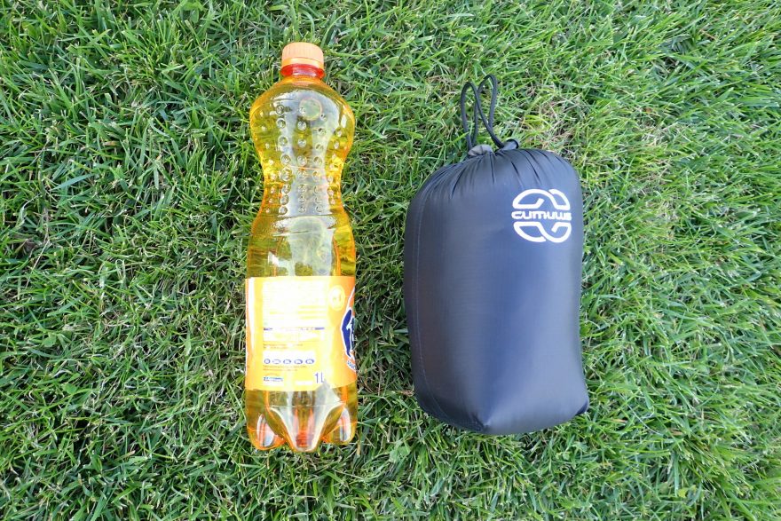 Porovnání velikosti sbaleného spacáku Cumulus Magic 125 s německým eintopfem.