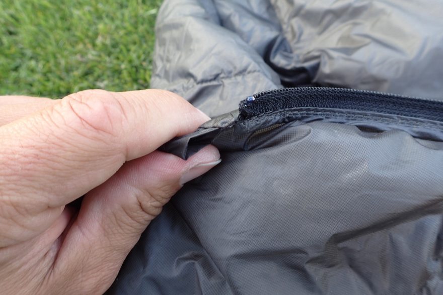 Zatažení spacáku pomocí malé samosvorky a pružné tkanice Jednoduché a vyzkoušené.