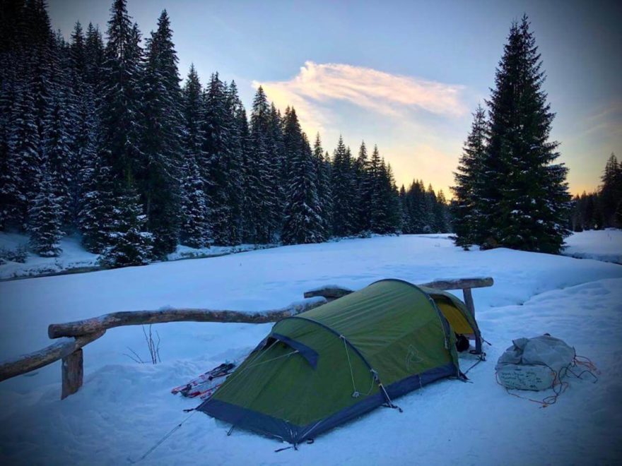 Večerní pohodička při rozmražování sněhu a vaření večeře na čundru na Šumavě
