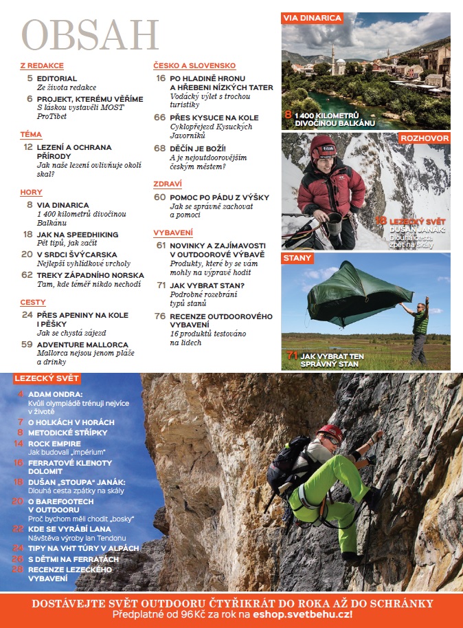 Svět outdooru 2/2019: Via Dinarica, lezení a ochrana přírody, ferratové klenoty Dolomit či jak vybrat stan