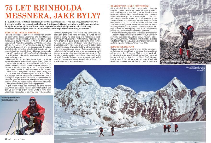 Galerie: Svět outdooru 3/2019: Reinhold Messner, po GR5 francouzskými Alpami, Mára a Háček nejen o Chamlangu, Lucie Výborná na Zinalrothornu a existuje univerzální bunda?