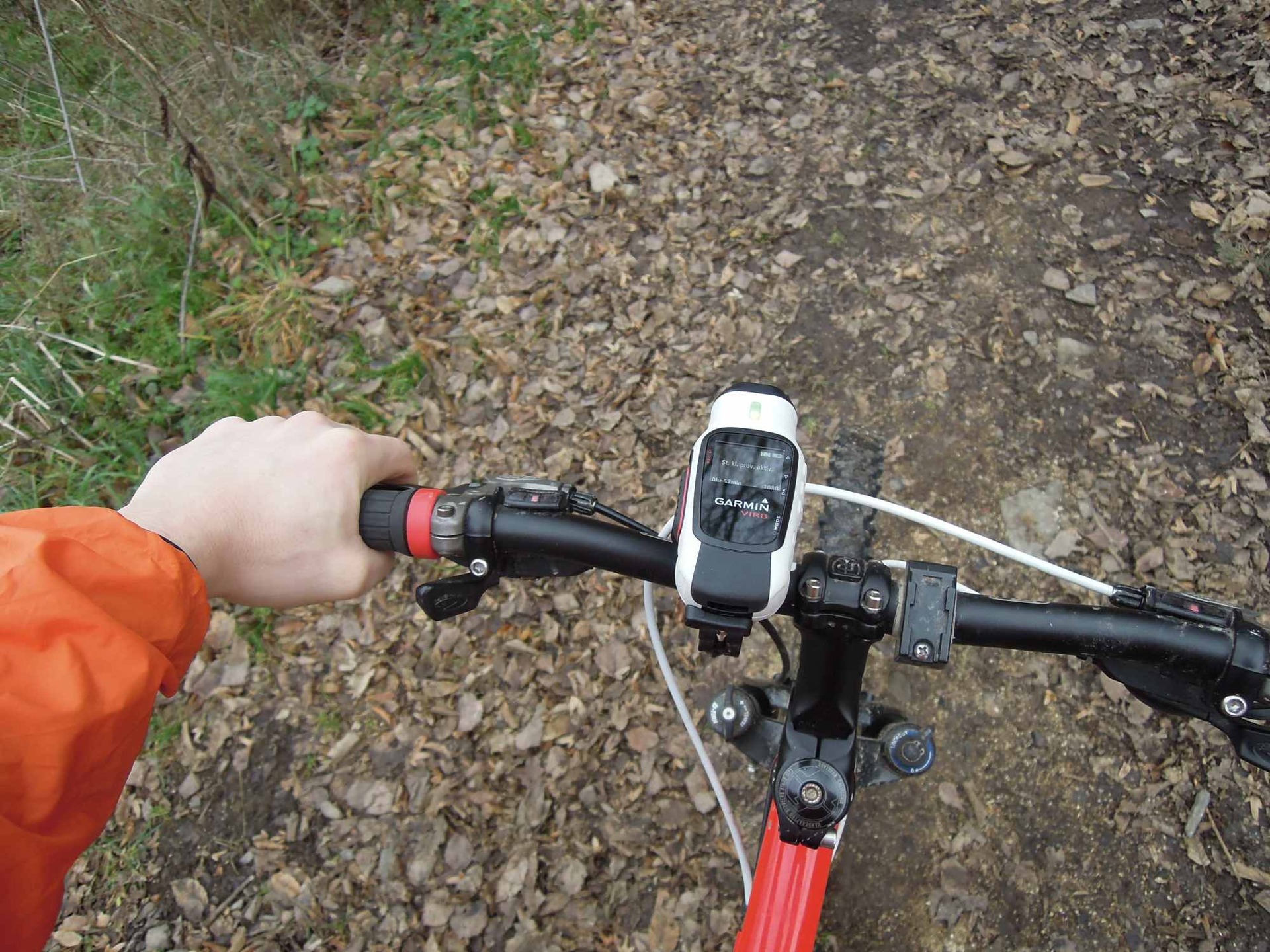 VirbElite lze pohodlně zapnout a vypnout třeba i při jízdě na horském kole. Díky velkému posuvnému tlačítku.