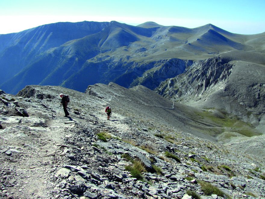 Stoupání na rozcestí Skala (2880 m) v pohoří Olymp