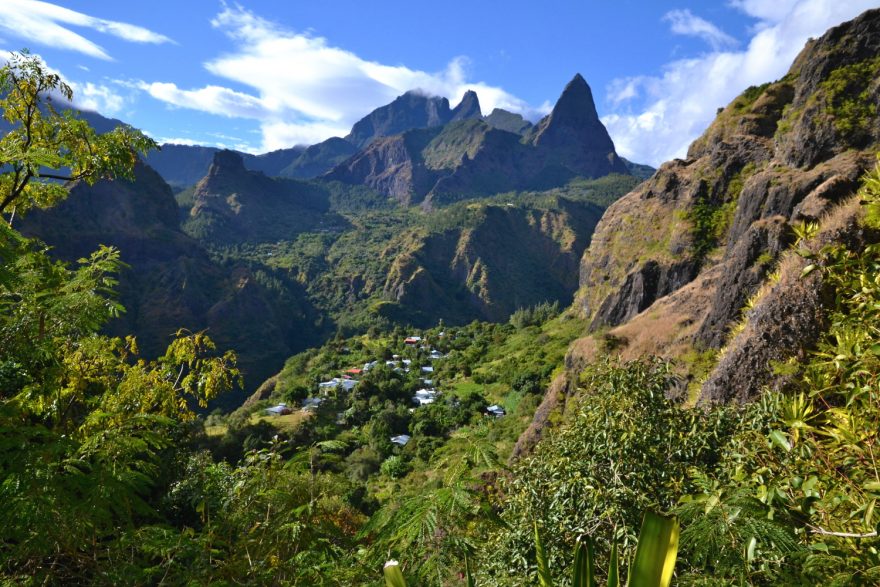 Výhledy do Cirque Mafate při sestupu z Dos D´Ane, Reunion.
