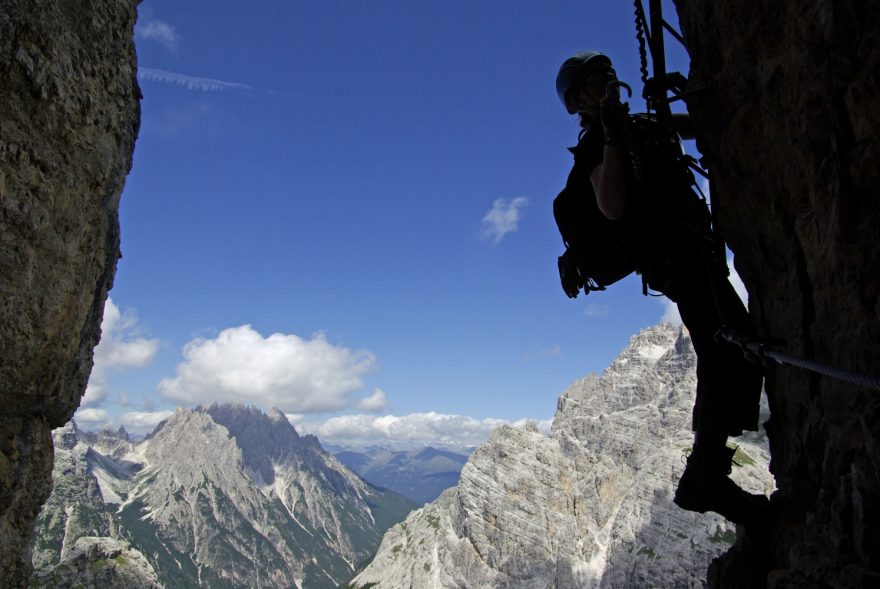 Zajištěné cesty v Dolomitech jsou nerozlučně spjaty s první světovou válkou. Právě díky zákopům a štolám, vybudovaným před sto lety, jsou dnes Dolomity prošpikované zajištěnými cestami a čelovka v batohu je absolutní nutností.