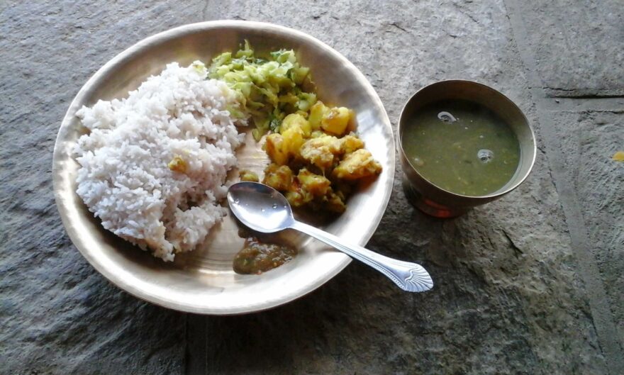tradiční nepálský pokrm Dal Bhat
