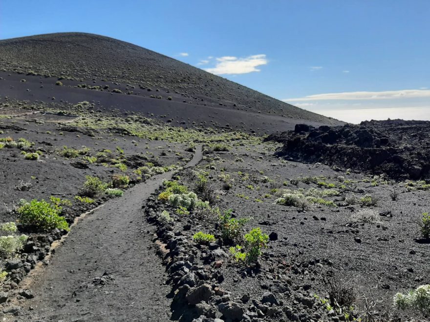 Stoupání po Ruta de los Volcanes od Refugia Pilar. La Palma, Kanárské ostrovy