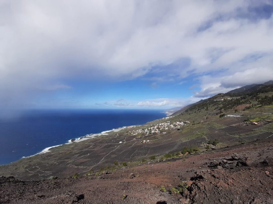 Vulkán San Antonio leží na jižním okraji městečka Fuencaliente. Ruta de los Volcanes, La Palma, Kanárské ostrovy