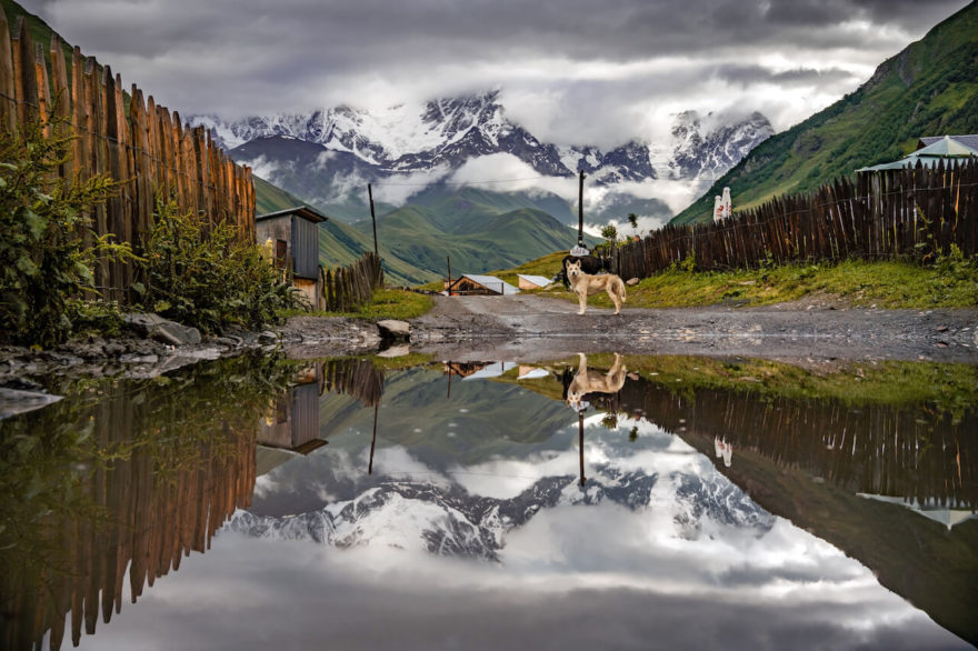 Fenomenální pohled na ledovce a rozkvetlé kvítí, Gruzie