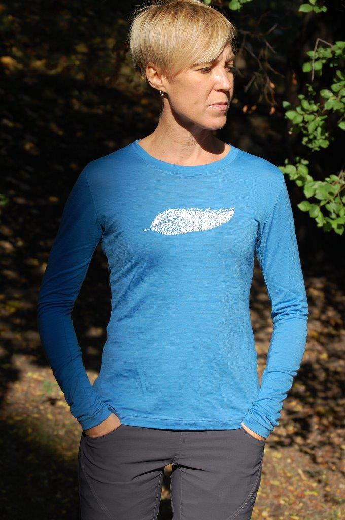 Sensor Merino Wool Active PT – Dámské tričko dlouhý rukáv Feather modré