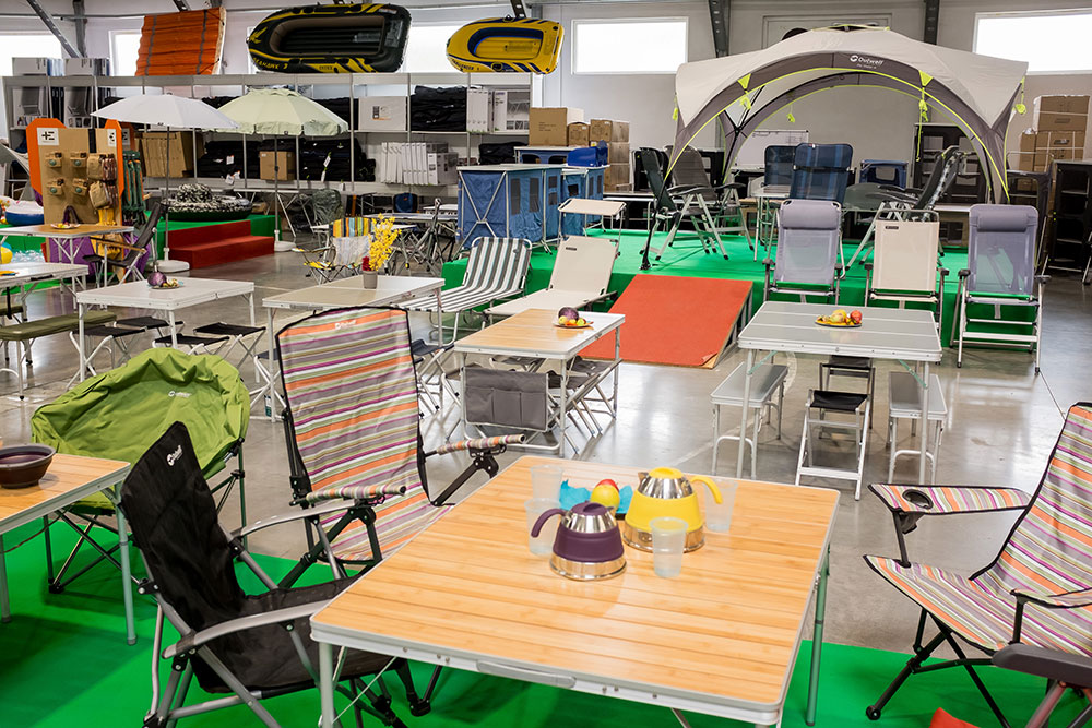 Kromě stanů si můžete vyzkoušet další outdoorové a kempingové vybavení.