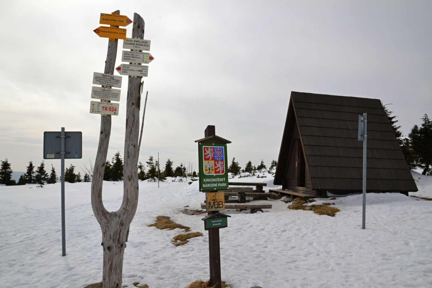 Přístřešek v sedle Pod Smělcem, Krkonoše, zima