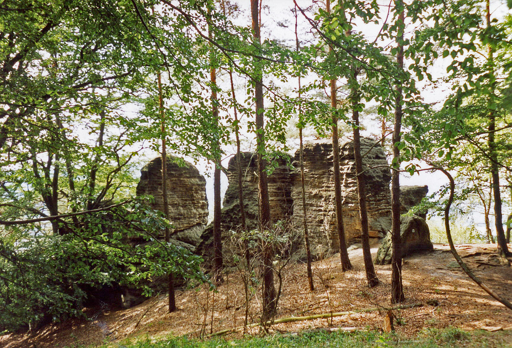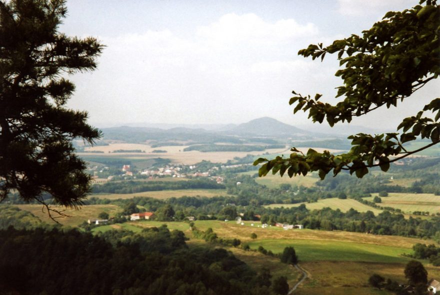 Za pískovcovými skalami se otevírá vyhlídka do okolí