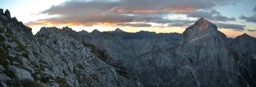 Jalovec - severní svahy v západu slunce. Julské Alpy