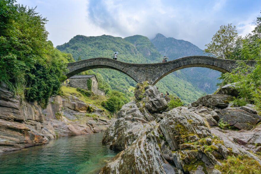 Vrchol kopce Cimetta je pro nás startem celé túry. Odtud je možné spatřit zároveň nejnižší a nejvyšší body Švýcarska – tedy Lago Maggiore a zasněžený masiv Monte Rosy (úplně vpravo).