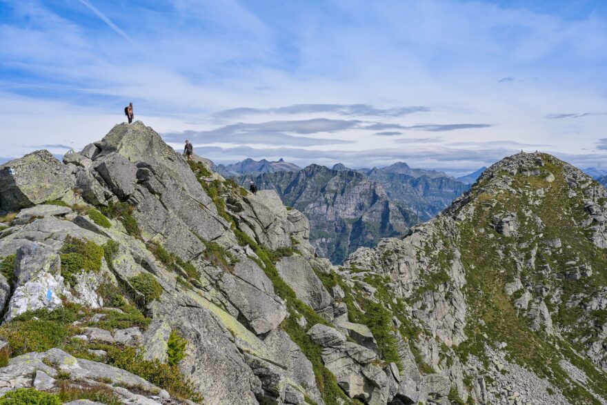 Druhý den překonáváme vzdušnou hřebenovou pasáž obtížnosti T5– s řetězy a železnými kramlemi a přitom hledíme do kilometrové hlubiny.