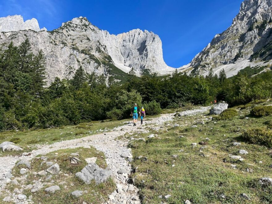 Zajištěná cesta Klamml Klettersteig má dvě části, které od sebe odděluje rokle Klamml.