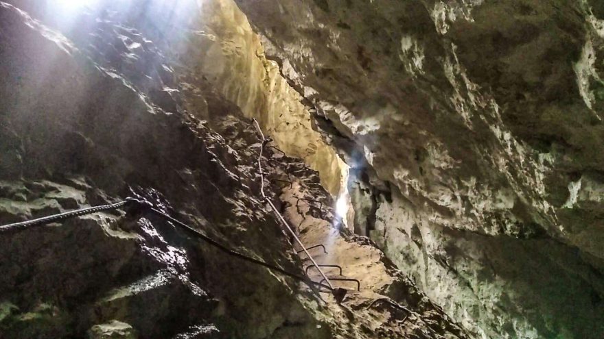 Při sestupu z feraty Mein Land - Dein Land, Solná komora, rakouské Alpy