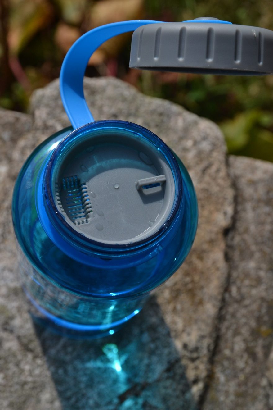 Pomocí silného oka se dá láhev připnout karabinou třeba na batoh.