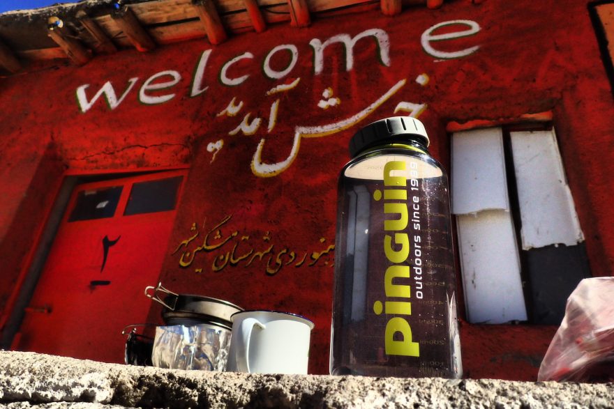 Testování lahve Pinguin Tritan Fat Bottle pod vrcholem Sabalanu 4811 m v Iránu a nejvyšší horou Damavand 5671 m.