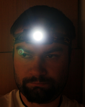 Čelovka je napájena jednou tužkovou baterií (AA)