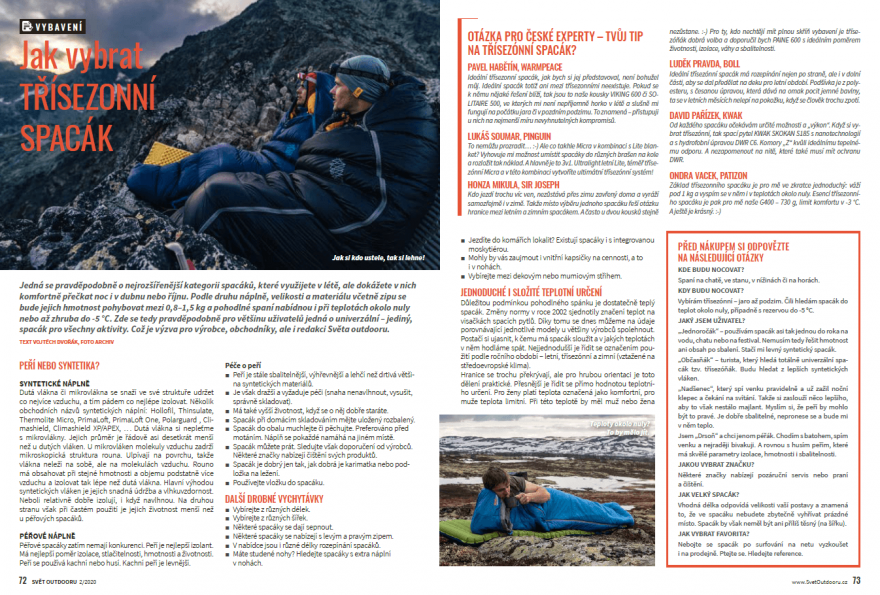 Jak vybrat třísezonní spacák ve Světě outdooru 3/2020.