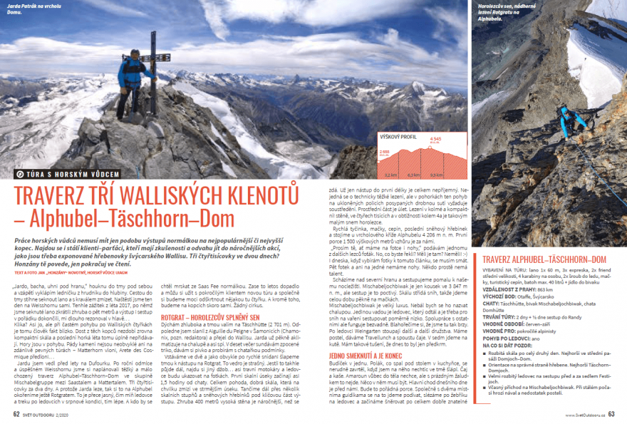 Túra s horským vůdcem: Traverz Alphubel-Täschhorn-Dom. Svět outdooru 3/2020.
