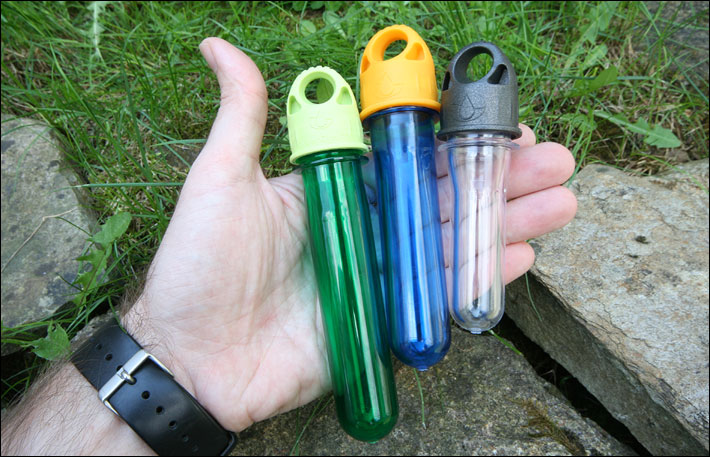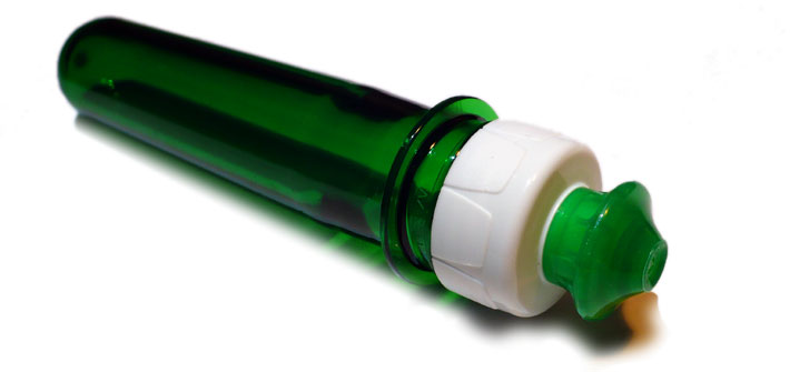 tuba Keep2go doplněná kutilsky o uzávěr push/pull z prostředku na mytí nádobí. Funguje dobře například na tekuté koření do polívky. Vzhledem k absenci odvzdušňovacího otvoru z ní nelze běžně pít nebo nalévat. Je nutné s tubou třást.