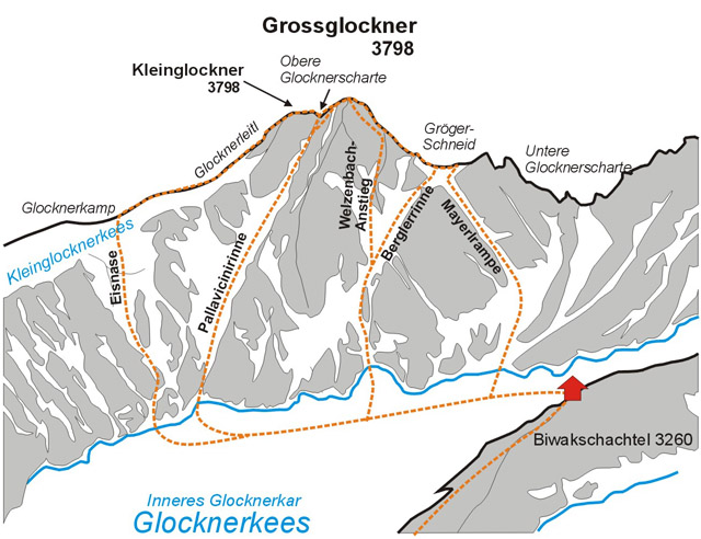 Galerie: Výstup na Grossglockner ze severu, Pallaviciniho kuloárem