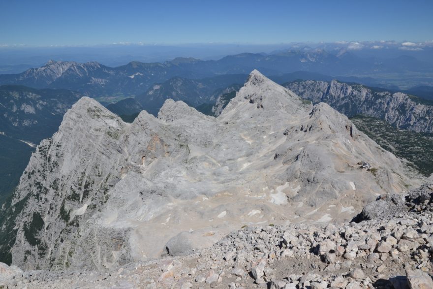 Výhled z vrcholu Triglavu. Výstup na nejvyšší vrchol Slovinska a Julských Alp – Triglav (2864 m).