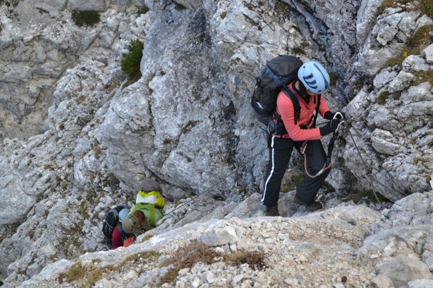 Jedna ze zajištěných pasáží na cestě Tominšek pot. Výstup na nejvyšší vrchol Slovinska a Julských Alp – Triglav (2864 m)