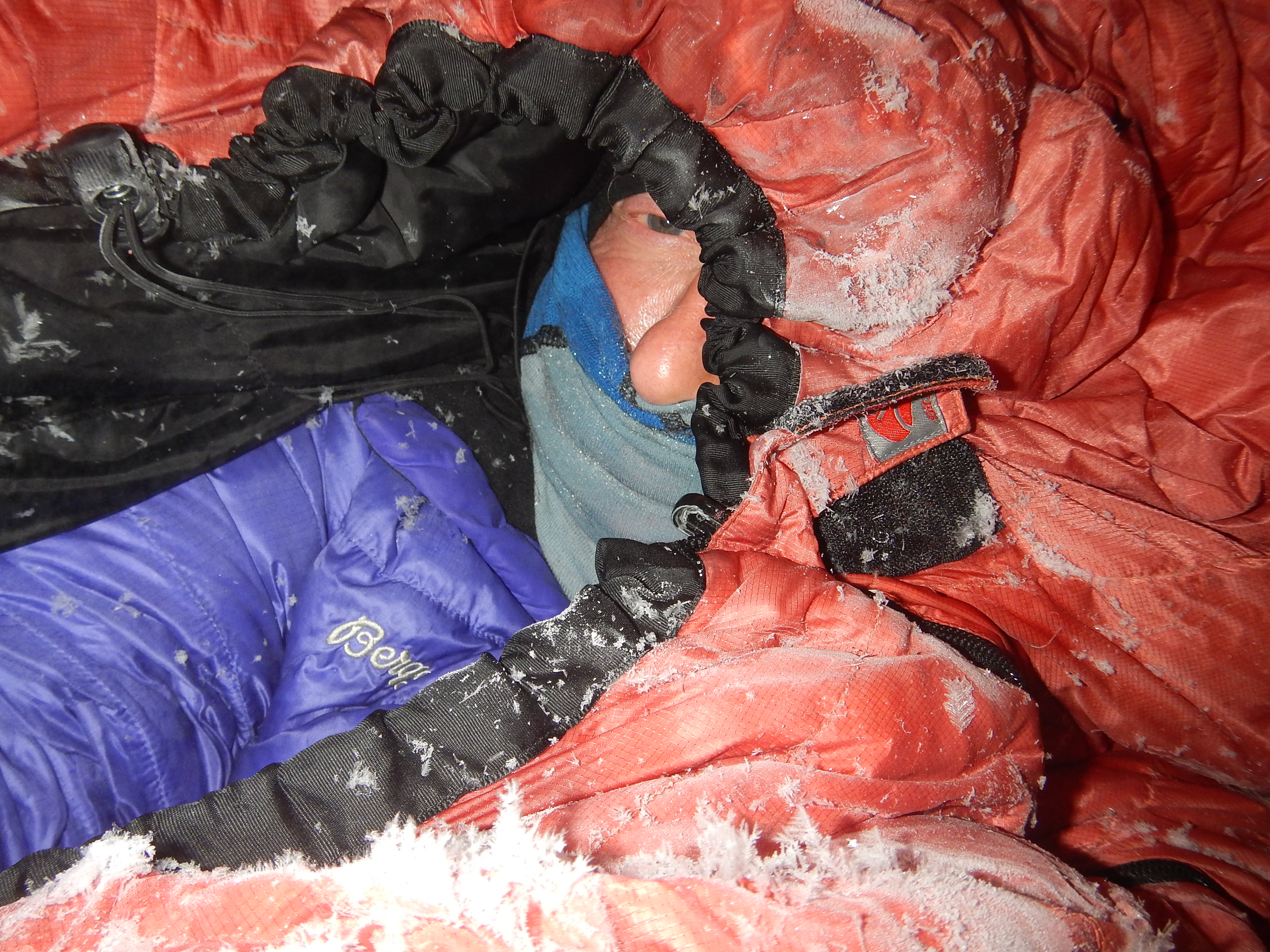 Při zimním táboření je potřeba chránit spacák před navlhnutím, proto si do něj nikdy si nesmíte „dýchat“.