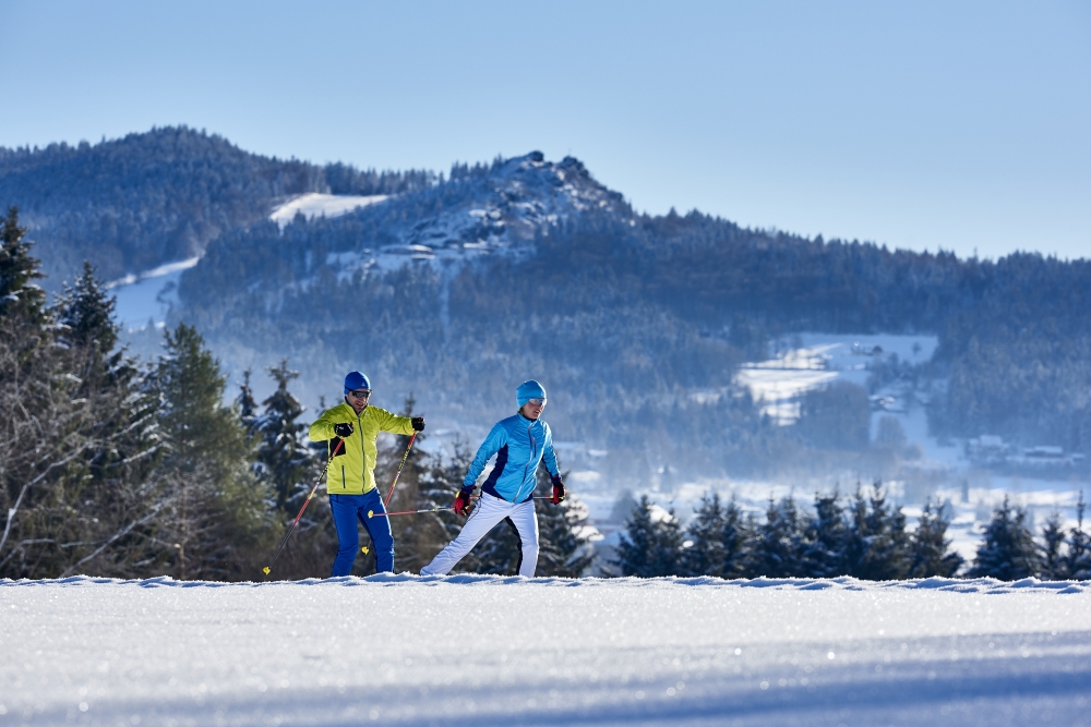 Běžecké tratě v Bodenmais, místní okruh u Maisu s výhledem na Silberberg