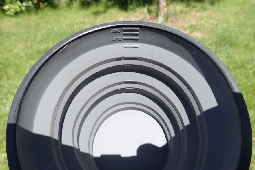 Ukazatel objemu u hrnečku v jednotkách cups.