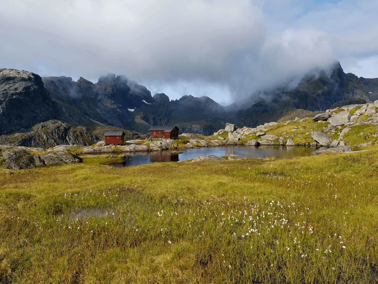 Chaty Munkebu spravované organizací DNT. Lofoty, Norsko.