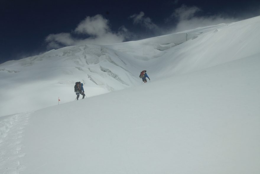 Mrazivý vítr a strmý svah nedávají prostor k odpočinku