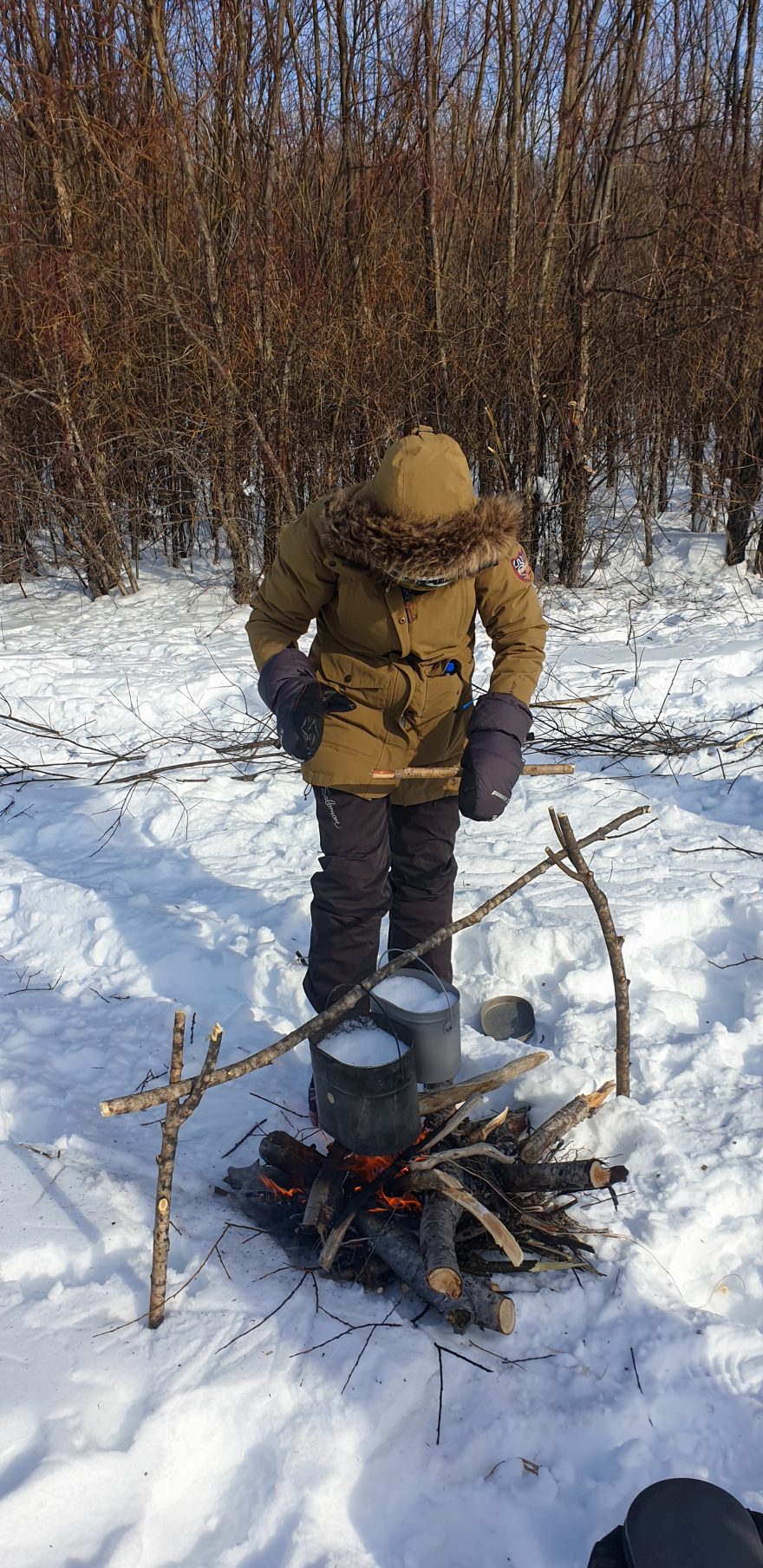Jídlo se v mrazu rychle ochlazuje. Kamčatka, zimní přechod, Rusko