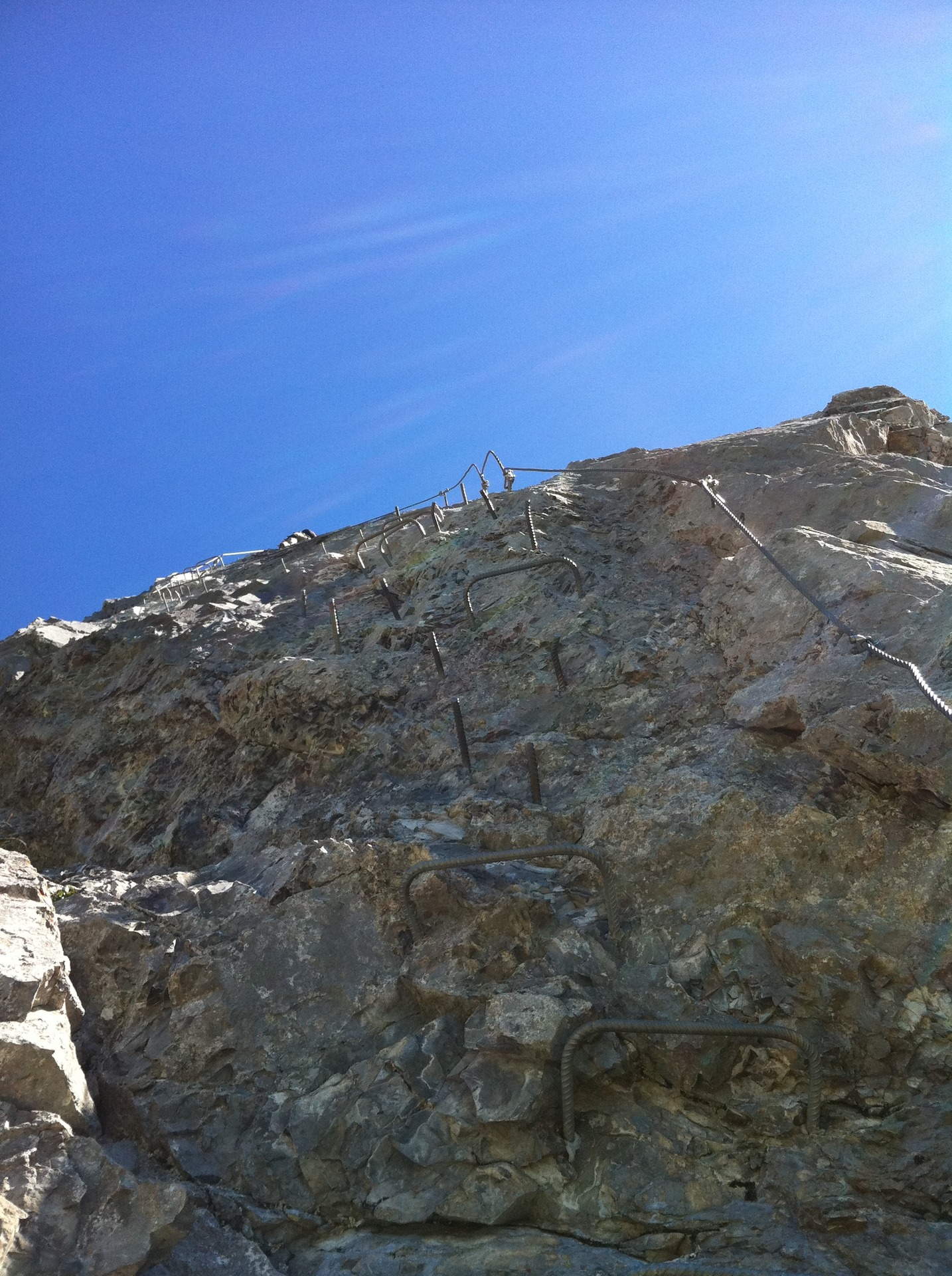 Ferata Zittergart má velmi strmé a exponované úseky, Engelberg, Švýcarsko.