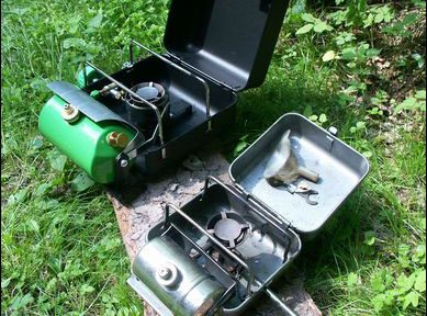 Přejít do galerieVařiče fungovaly všechny stejně. Do vaničky pod hořákem se dal pevný líh nebo nalil tekutý líh či nejčastěji se ulilo trochu benzinu (někteří pomocí injekční stříkačky, jiní cmrndnutím) a zapálil. Tak se předehřál hořák, benzin začal zplynovat a vařič se s typickým hučením rozjel. Ačkoliv nádržka s benzinem oddělená od hořáku jen posuvnou kovovou krytkou vypadala nebezpečně, provoz býval bez větších problémů. Jak už bylo řečeno, jen s rozjezdem těch netlakovacích modelů bez pumpičky býval ve větší zimě nebo silnějším větru trochu problém.