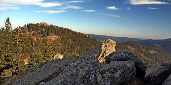 Oba vrcholy se nacházejí na německé straně hranice. Vrcholová skála vyššího z nich je však od hranice vzdálena jen několik metrů. Těsně pod touto skálou, ze které se otvírá nádherný kruhový výhled na Šumavu a navazující Český les, byla v roce 1897 otevřena horská chata. Ta po několika úpravách funguje dodnes jako restaurace i noclehárna. Její vzhled, umístění a ráz okolní krajiny jí dodávají téměř alpský charakter.