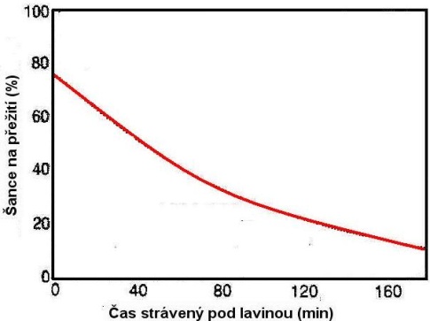 Pravděpodobnost přežití pod lavinou jde v závislosti na čase velmi rychle dolů.