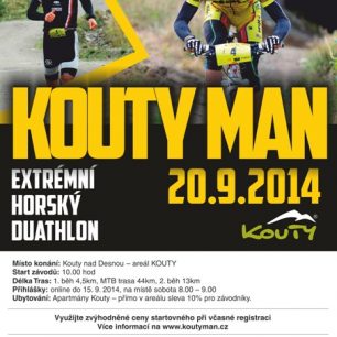 Stejně jako loni v září se v areálu Kouty v Jeseníkách setkají sportovní nadšenci, aby poměřili své schopnosti s náročným horským terénem nejkrásnějších českých hor. Extrémní duatlon Koutyman odstartuje v sobotu 20. září dopoledne.