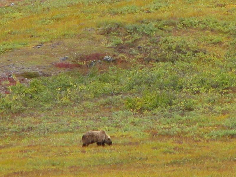 Orientačními body během našeho putování jsou kromě řek a markantních hor i velká jezera. Často u nich překvapíme malé stádo sobů Karibů a na denním pořádku jsou setkání s medvědy. Čím hlouběji pronikáme do hor a blížíme se otevřené tundře tím častěji vídáme matky-medvědice většinou se dvěma mláďaty, ale hojně se tu vyskytují i medvědi v sourozeneckých párech. Jsou to mladé kusy a přicházejí k nám hodně blízko, než se přesvědčí, že nestojí za to se o nás dál zajímat. Jsou to chvíle plné napětí a je těžké odhadnout, jak takové setkání skončí a kde je pro medvěda hranice, za kterou už se neodváží nebo naopak za niž zaútočí. Pro jistotu máme na předních stranách batohů připevněné pepřové spreje, ale v duchu doufáme, že je nebudeme muset použít.